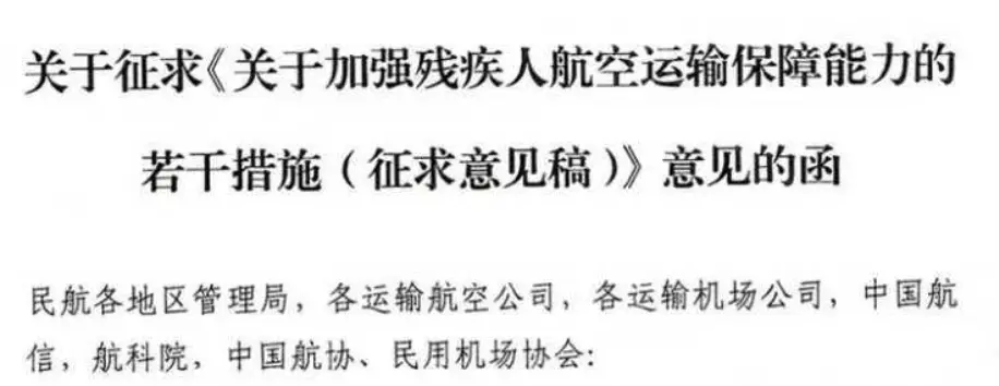 中国民航局近日向航空公司、机场等相关单位下发《关于加强残疾人航空运输保障能力的若干措施(征求意见稿)》(下称“《意见》”),希望在保证安全的前提下,提升残疾人的航空出行服务品质。