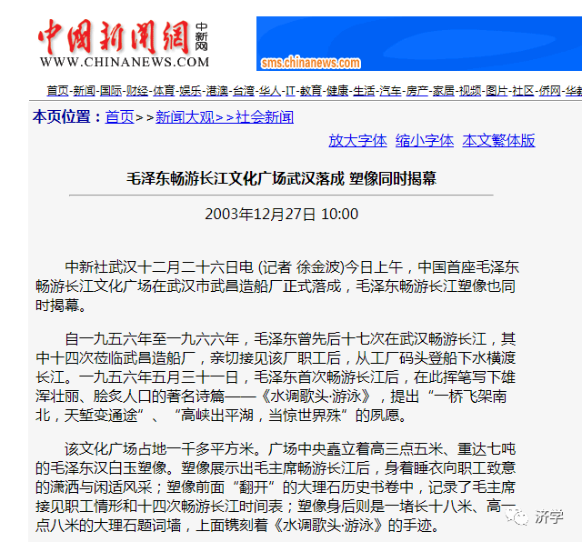 2003年中国首座毛主席畅游长江文化广场和毛主席塑像在武船揭幕
